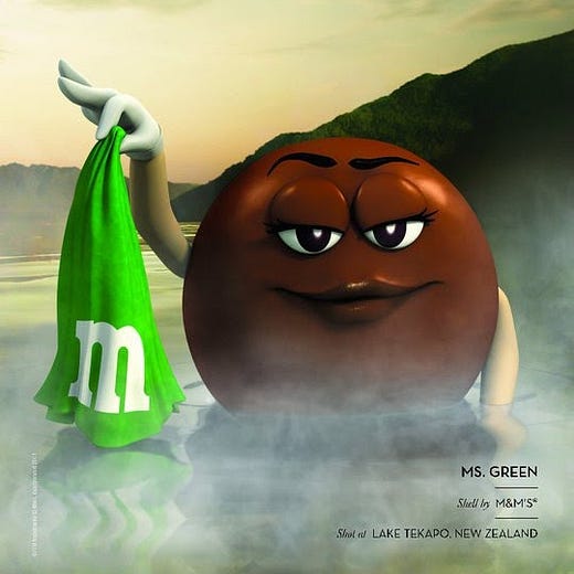 Evidentemente preferivano quando la M&M’s verde era molto più ammiccante.